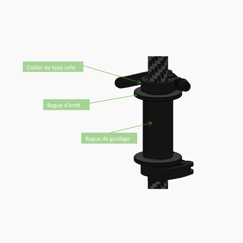 - Les 2 bagues d’arrêt assurent le blocage en translation de la perche sur son support.